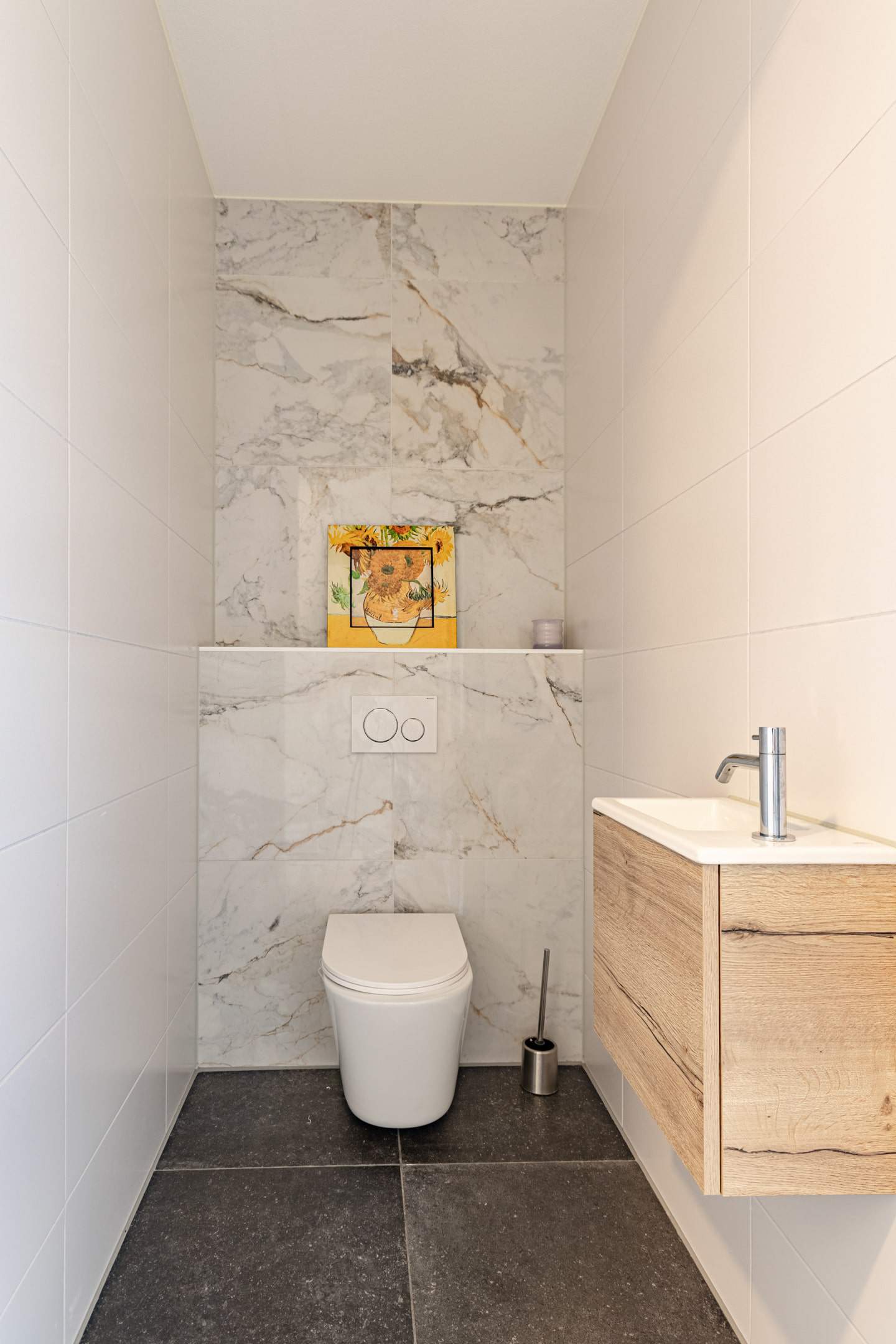 Bij binnenkomst kom je in de hal, die leidt naar een apart toilet met fontein en een inpandige berging met opstelling voor de wasmachine en warmtepomp. De ruime woonkamer met openslaande deuren naar het dakterras heeft een fijne open keuken die uitgerust is met moderne apparatuur, zoals een inductiekookplaat, combi-oven/magnetron, koel-/vriescombinatie en vaatwasser. De woonkamer biedt toegang tot het dakterras via openslaande deuren. Aan de achterzijde van het appartement bevinden zich twee slaapkamers, en de luxe badkamer is voorzien van een ligbad, inloopdouche, wastafelmeubel en handdoekradiator.
