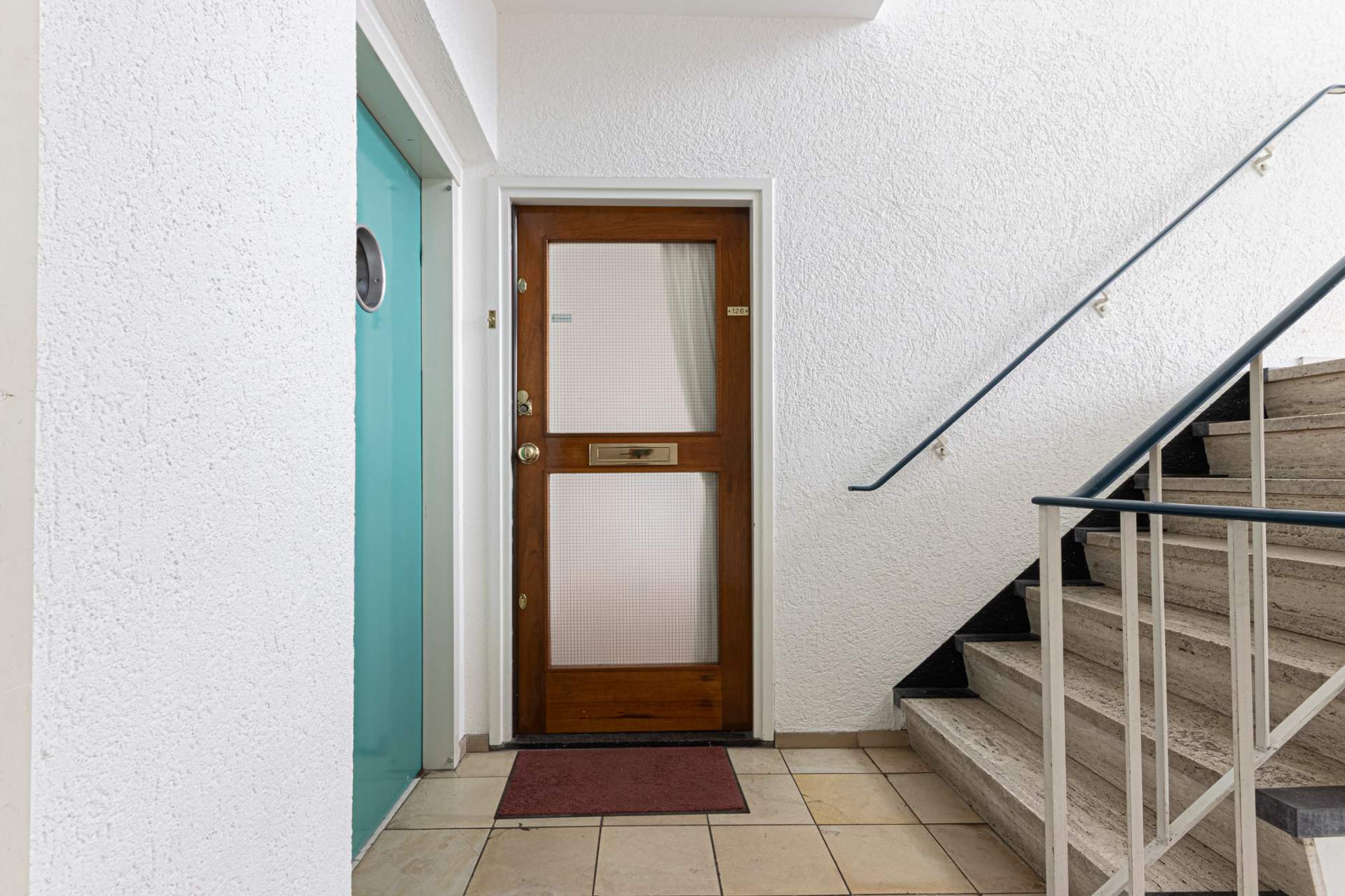 Entree, hal, trappenhuis, lift en toegang naar de bergingen.