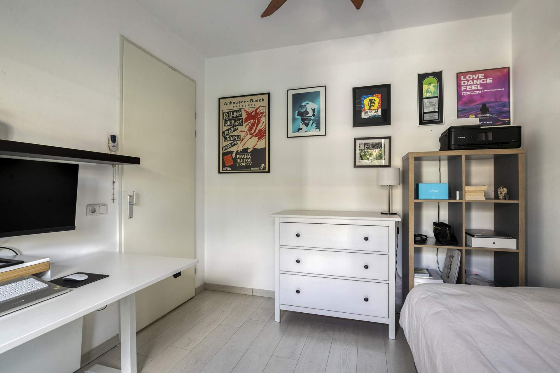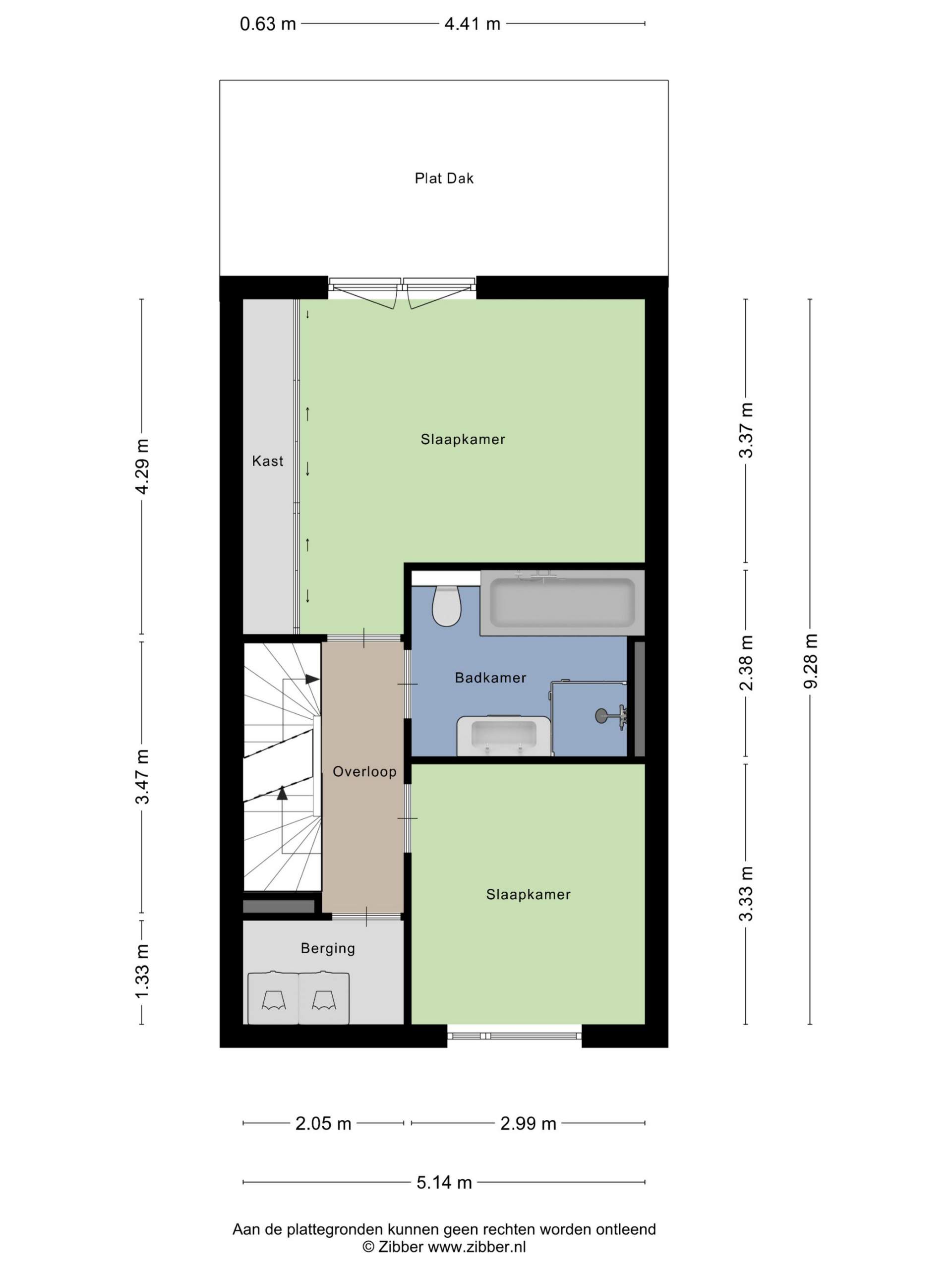 Landing with access to two spacious bedrooms, a storage/laundry room, and a luxurious en-suite bathroom. The bathroom is equipped with a bathtub, shower, second toilet, and sink. The master bedroom is located at the rear and spans the full width of the house, with French doors and a Juliet balcony. The bedroom at the front has a wide window frame with a lovely view of Troelstralaan.