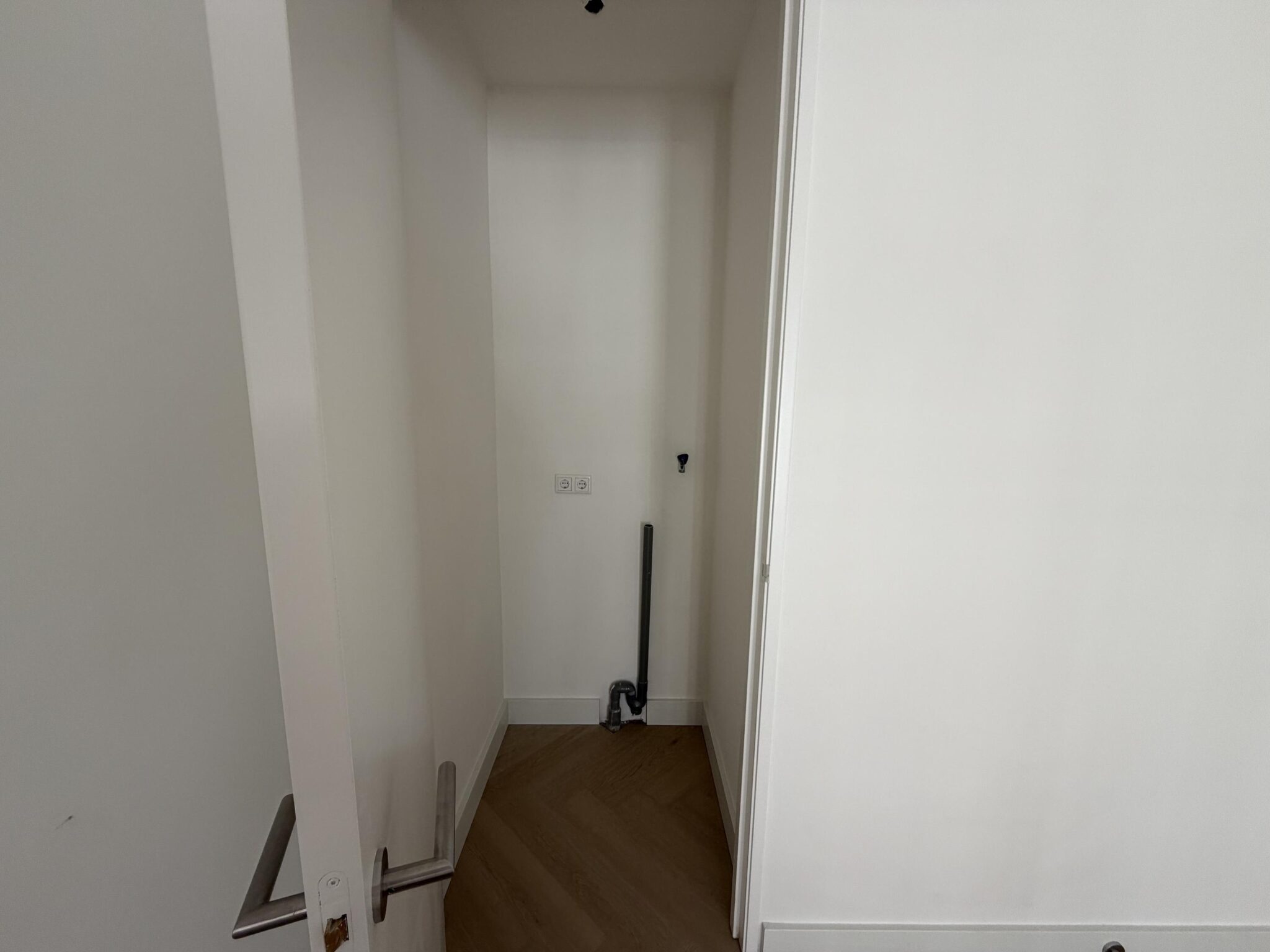 Overloop met toegang tot twee slaapkamers: een ruime hoofdslaapkamer met kastruimte en aansluiting voor de wasmachine