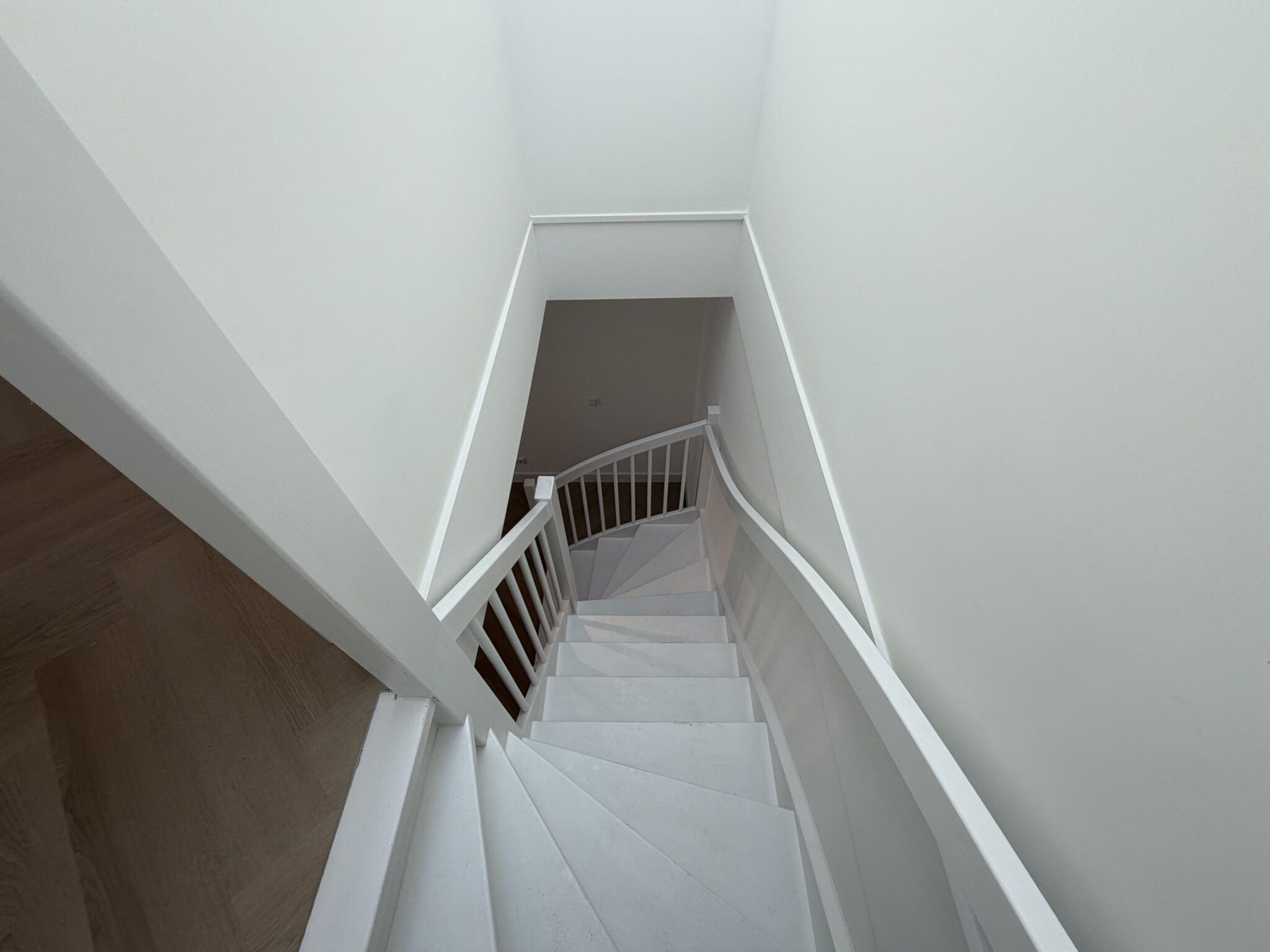 Landing with access to two bedrooms: a spacious master bedroom with closet space and connections for a washing machine, and a second, smaller room, ideal as a nursery, office, or study, with direct access to the terrace (approx. 4 m²).